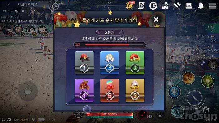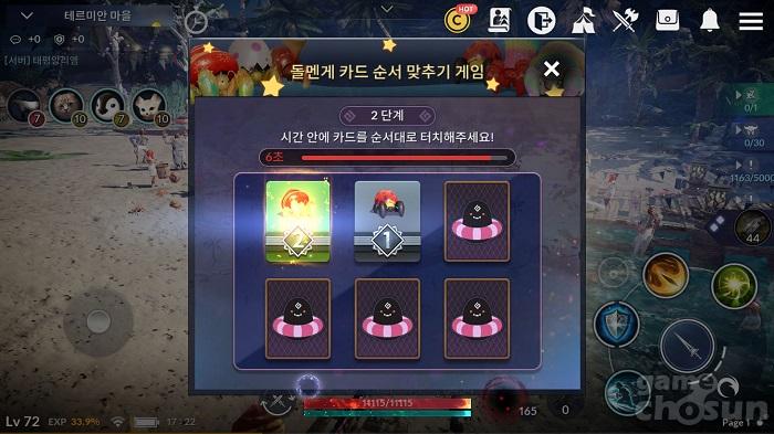 해당 미니 게임은 기억력을 테스트하는 형태다. 일정 시간 동안 순서가 적힌 카드를 보여주고, 시간이 지나면 모든 카드를 뒤집는다. 카드 뒷면은 모든 카드가 동일한 모양. 이 상태에서 카드 앞면의 번호 순서대로 모두 뒤집으면 성공.