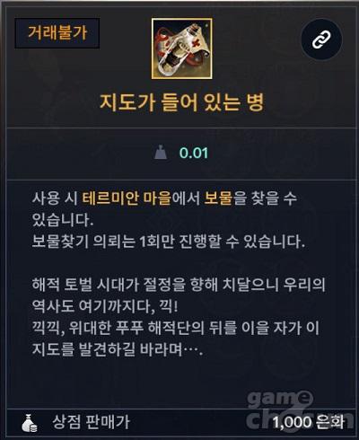 또, 현재 진행 중 이벤트인 여름 스페셜 낚시의 '물놀이하던 흑정령'도 심심찮게 올라온다. 이를 통해서 이벤트 페이지에서 각종 보상으로 교환 가능. 마지막으로 획득 가능할 수 있는 것은 바로 '지도가 들어 있는 병'인데, 해당 아이템을 획득해 사용하면 부가적인 의뢰를 진행할 수 있다. 지도가 들어 있는 병으로 보물을 찾게 되면 다량의 황금 실러캔스와 황금 불가사리가 주어진다.