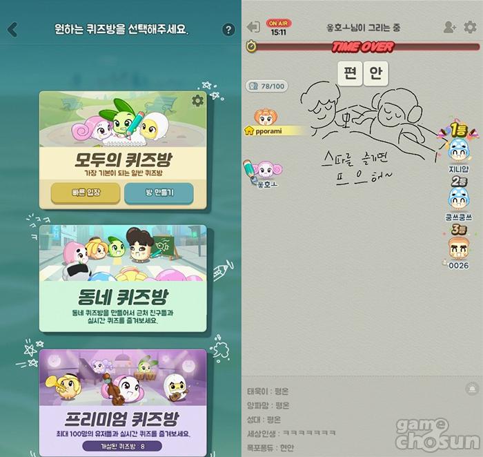 3가지 실시간 모드(좌측), 최대 100인이 즐기는 프리미엄 퀴즈방 = 게임조선 촬영