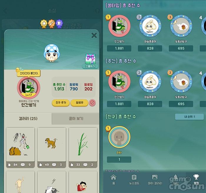 갤러리 기능과 랭킹 기능이 도입됐다. = 게임조선 촬영