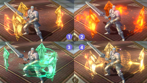 축복의 섬광 | 두 종류의 고리를 획득하고 서로 전환하여 사용 가능합니다. 01 징벌의 고리 자신과 주변 파티원의 공격력을 증가시킵니다. 02 치유의 고리 자신과 주변 파티원의 생명력을 회복시킵니다. |