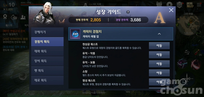 성장 가이드만 잘 따라가도 게임 진행에 어려움을 겪을 일은 없다 = 게임조선 촬영