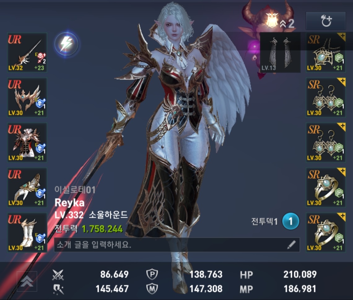 안녕하세요. 신규서버 이실로테에서 카마엘 메이지 '소울 하운드를 육성 하고 있는 Reyka입니다.