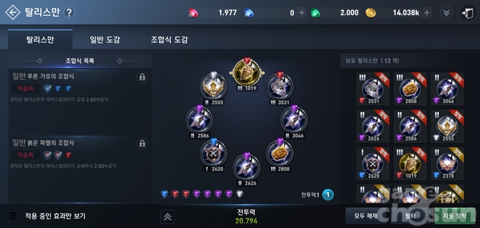 탈리스만은 우선 영웅 조합식인 무자비한 격노의 조합식을 운선 순위로 맞추고 있으며 하위 조합식을 단계단계 성장시키고 있습니다. 무지바히나 격노 조합식은 크리티컬 증가 외에도 물리/마법 방어력 증가 덕분에 소울 하운드의 낮은 방어력을 조금이나마 보완할 수 있기 때문입니다.