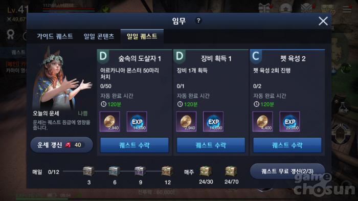자신이 원하는 퀘스트만 고를 수 있다 = 게임조선 촬영