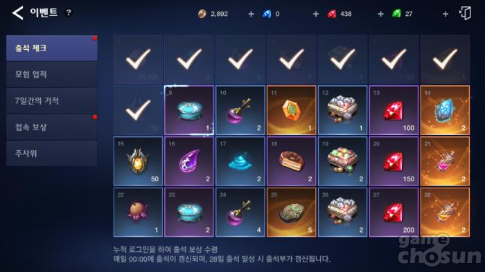 출석만 해도 다양한 아이템을 보상 = 게임조선 촬영