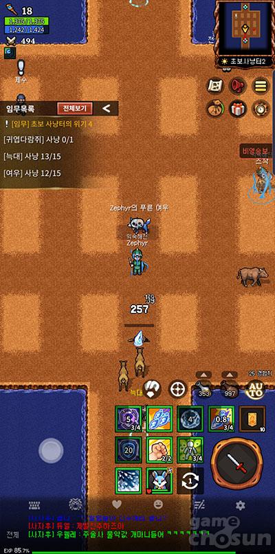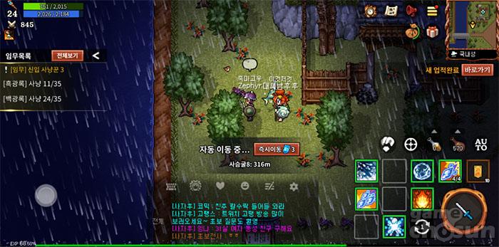 모바일 편의를 위해 자동 사냥이 지원된다. 스킬 우선순위 등 자동 사냥 설정을 통해 사냥 방법을 조절해나갈 수 있다. 또한, 몰이사냥 가능, 파티 사냥도 건재하다.
