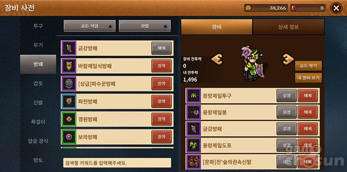 도감을 통해 장비 능력과 입수 정보를 미리 확인할 수 있었다 = 게임조선 촬영