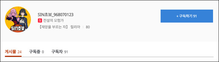 SIN초보 님의 공식 포럼 프로필. 구독자 수는 지금도 꾸준히 늘고 있는 중이다. = 게임조선 촬영