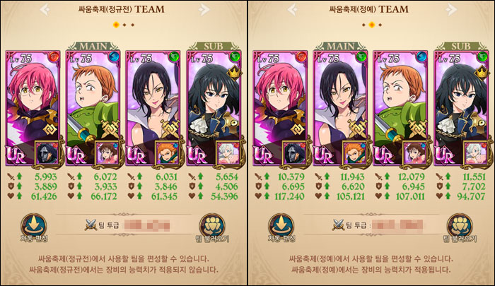 각 섬멸전별 덱과 스팩 (팀 투급은 요청에 따라 미공개) = SIN초보님 제공