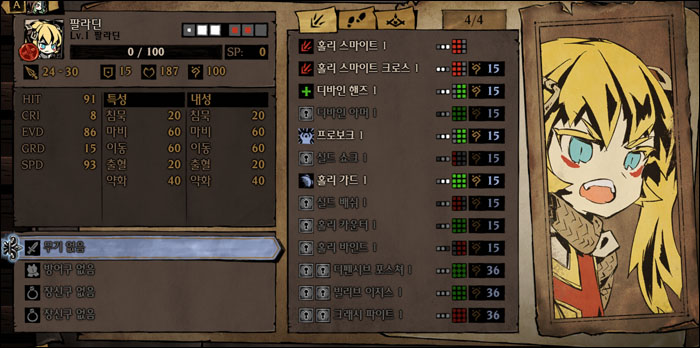 팔라딘은 전열 탱커겸 보조힐러다. 도발/가드 스킬을 활용해 자신에게만 공격을 집중시키고, 높은 체력과 방어력을 바탕으로 버텨내는 것이 주된 활용법. 경우에 따라 힐링으로 파티를 보조할 수도 있다. 적의 공격을 얼마나 많이 받아낼 수 있느냐가 파티의 안전과 직결된다. 전열을 벗어나면 활용도가 급격히 줄어드니 최선선에 배치하는 것이 중요.