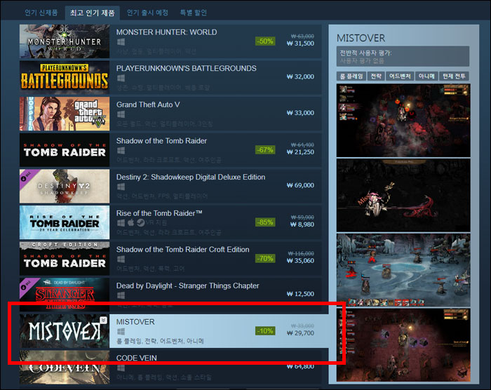 미스트오버는 콘솔 볼모지인 한국에서 완전한 패키지 게임으로 나와 이목을 끌고 있는 게임. 들어갈 때마다 던전, 몬스터 배치, 드롭 아이템이 달라지는 다키스트 던전류의 로그라이크 RPG로 지난 5월 유저 간담회를 통해 도전욕구를 자극하는 높은 난이도를 가진 게임이라 소개한 바 있다.