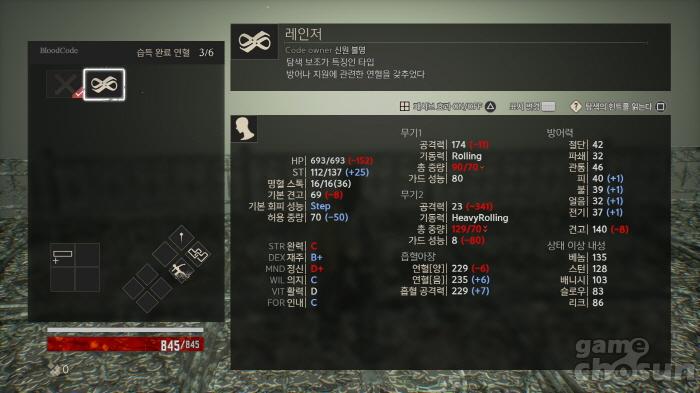 각 블러드코드마다 연혈을 배울 수 있다 = 게임조선 촬영