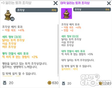 | 1 | 달리는 토끼 조각상 | 이동 속도 1% | 적 처치 후 얻는 경험치 +2% |