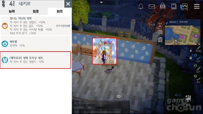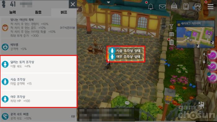 설치한 조각상에 따라 버프가 생긴다 = 게임조선 촬영