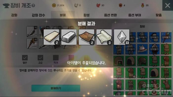 목재와 루나리움 파편은 분해로 쉽게 얻을 수 있다 = 게임조선 촬영
