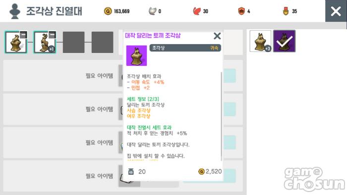 세트 정보는 조각상을 누르면 확인 가능 = 게임조선 촬영