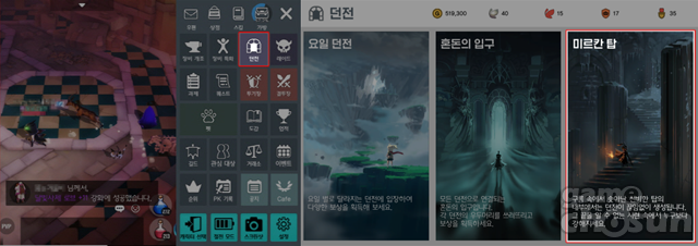 던전-미르칸 탑에서 입장 = 게임조선 촬영