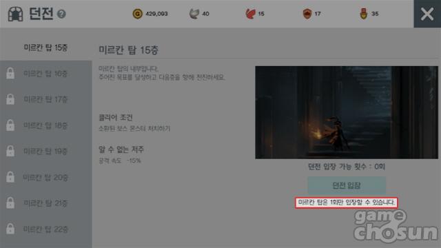 1회 입장으로 표시돼 있지만 실제로는 하루 1번 = 게임조선 촬영