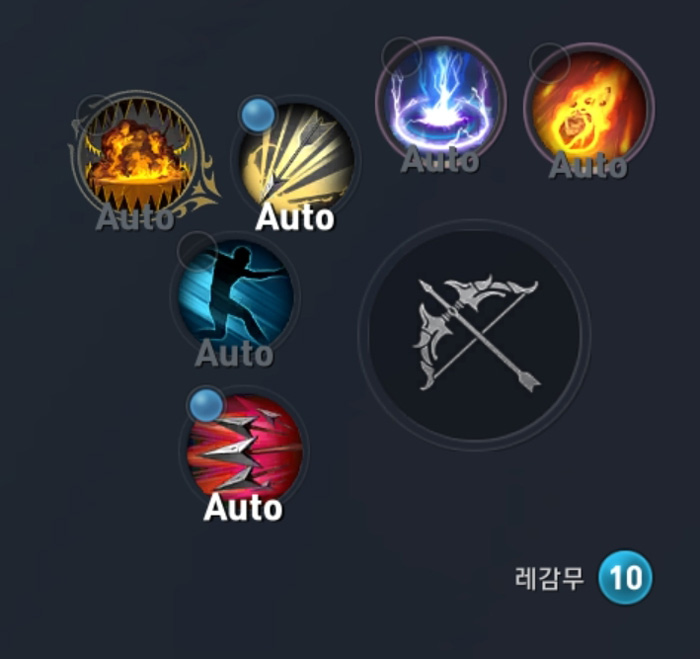사냥용 스킬 빌드는 파워 샷-더블 샷-버스트 샷-임팩트 배리어-메테오 스톰을 사용하고 있으며 PvP에서 1:1 내지는 소규모 교전시 아까 말한 낚시 콤보를 위해 더블 샷을 어보이드 스텝으로 대체한 뒤 썬더 볼트와 포이즌 스트라이크 조합을 쓰고 떼쟁시에는 레어 스킬을 디펜스 존 또는 메테오 스톰으로 교체하여 광역 공격, 방어 능력을 보충합니다.