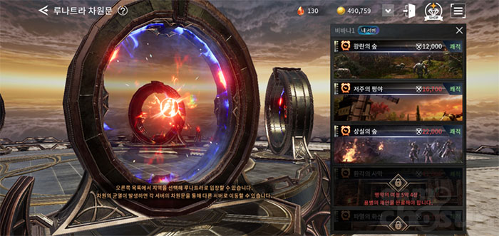 차원 균열 발생 시 타 서버의 루나트라 필드로 이동할 수 있다 = 게임조선 촬영