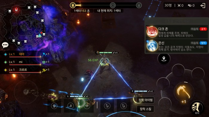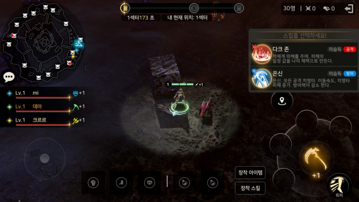 게임이 시작되면 4개로 나누어진 구역 중 가장 바깥쪽에서 시작한다. 일정 시간 후 바깥 구역부터 폐쇄 지역으로 변하며, 폐쇄 시간이 되면 사신이 등장해 해당 구역에 남아있는 캐릭터에게 강력한 데미지를 준다. 이용자는 각 구역에 생성된 몬스터를 잡아 레벨업과 파밍을 진행하고, 일정 시간마다 등장하는 보급품을 두고 적 캐릭터와 경쟁한다. 2구역부터는 회복과 적 디버프 효과를 가진 오브젝트가 생성되며, 해당 지역을 중심으로 전투가 벌어진다. 캐릭터는 사냥과 전투를 통해 성장하며, '링크 시스템'을 통해 아군 캐릭터와 성장을 공유할 수 있다. 단, 캐릭터끼리 일정 거리 이상 벌어지면 링크가 단절돼 성장이 멈춘다.