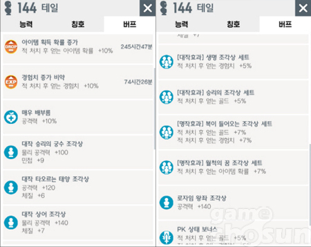 경험치 및 골드, 아이템 확률 증가 세트 옵션이 눈에 띈다 = 테일 제공
