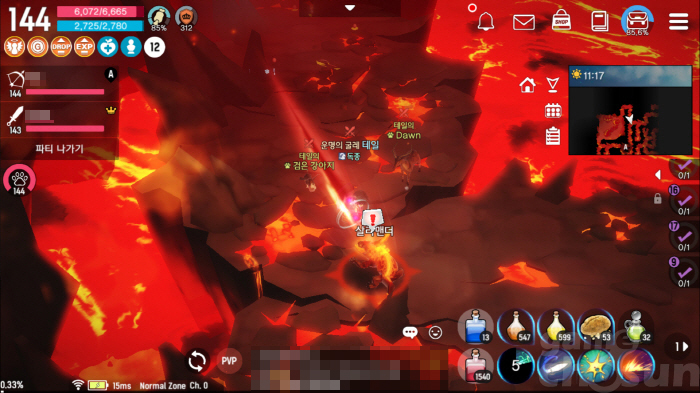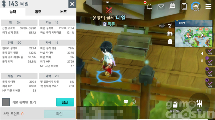 수동 사냥으로 동선 낭비를 방지해 빠른 레벨업이 가능했다 = 테일 제공