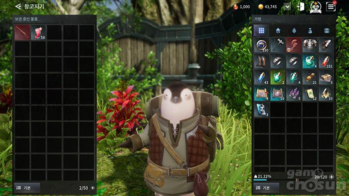 마을에 있는 창고지기를 통해 캐릭터 간 아이템을 옮길 수 있다. = 게임조선 촬영