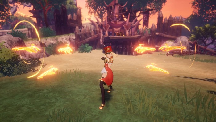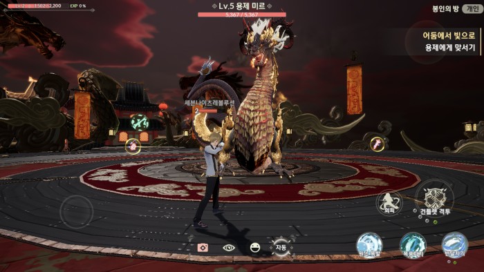 간단한 튜토리얼을 통해 기본적인 조작과 전투를 익히면 거대 골렘 마그누스를 발견할 수 있다. 여기서 세븐나이츠레볼루션의 핵심 시스템인 '무기 변신 및 영웅 카드'를 사용할 수 있다. 주인공은 세븐나이츠 영웅 '아일린'의 무기 카드를 활용해 제압기를 체험할 수 있다.