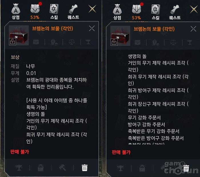 브렘논의 보물에서 획득 가능한 보상 = 게임조선 촬영