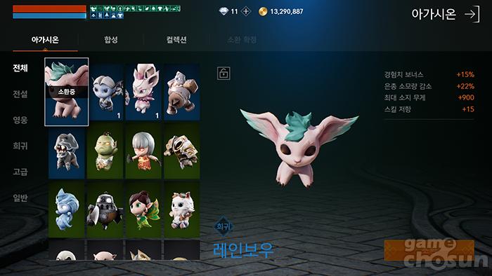 희귀 등급에서 유별나게 효율이 좋은 '레인보우' 아가시온 = 게임조선 촬영
