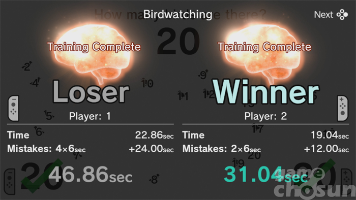 다만 조이콘 자체가 무선 환경의 영향을 많이 받는 주변 기기다 보니 와이파이나 무선 기기가 밀집된 환경에서 구동할 경우 키 입력이 밀리거나 인식률이 떨어지는 등의 문제를 보이기도 했다. 하지만 이를 고려하더라도 다른 게임에서 그다지 활용한 적 없는 적외선 기능을 적극적으로 사용한 부분은 역시 기기가 달라져도 두뇌트레이닝 시리즈 게임답다는 생각이 들게 만든다.