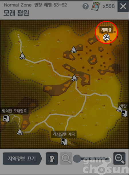 초반에 많이 찾게 되는 개미굴 지역에서 퀘스트 시작 = 게임조선 촬영