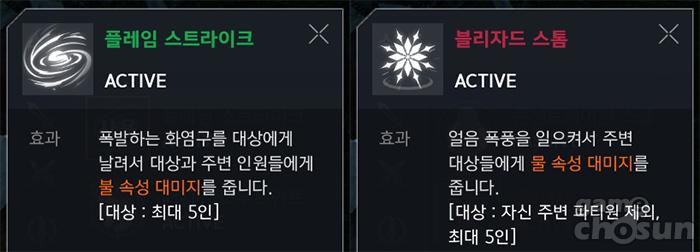 플레임스트라이크와 블리자드의 스톰은 동일하게 5인 대상이지만 텍스트가 다르다. = 게임조선 촬영