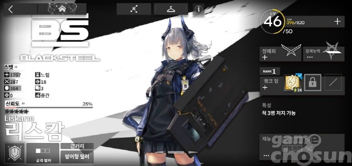 기력 회복을 가지고 있어 다른 캐릭터의 빠른 스킬 사용을 보조하는 리스캄 = 게임조선 촬영