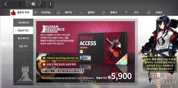 마지막으로 합성옥을 확정적으로 획득할 수 있는 방법은 과금이다. 구매 센터에서 판매하는 패키지 중, '먼슬리 카드'를 구매하면 매일 로그인 시 합성옥을 200개 씩 30일 동안 지급한다. 주간으로 따지면 7일 동안 총 1400개가 주어지는 것이다. 그리고 30일 모두 획득하면 총 6,000개, 10회 연속 뽑기를 할 수 있는 양이다. 먼슬리 카드의 가격은 월 5,900원.