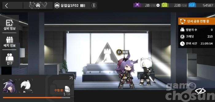 응접실 레벨이 올라가면 다른 친구에게 빌려줄 수 있는 오퍼레이터 수가 세 명까지 늘어난다. 1일 1회에 한해 친구가 자신의 오퍼레이터를 빌리면 20 크레딧, 빌린 친구는 30 크레딧을 받을 수 있다.