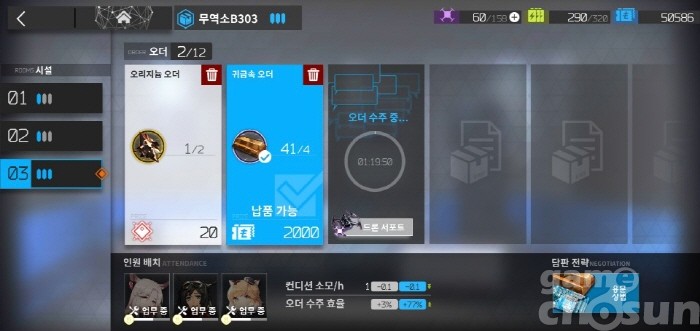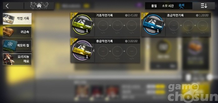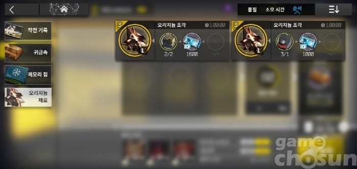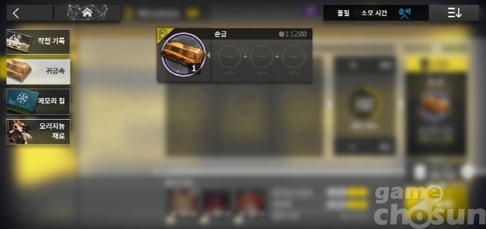 초반에는 오리지늄 오더보다 귀금속 오더를 더 많이 사용하게 된다 = 게임조선 촬영