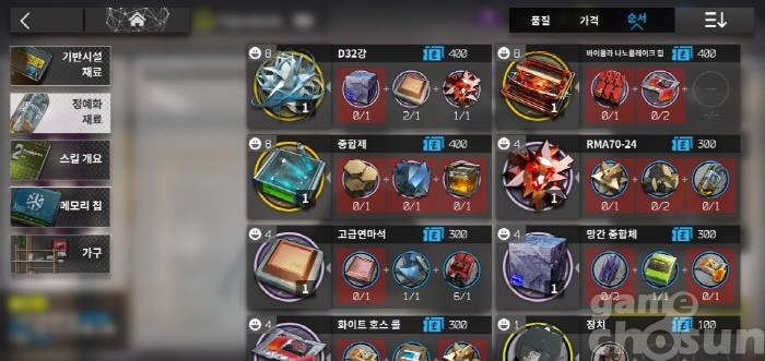 제조소에서 만들 수 있는 재료들 = 게임조선 촬영