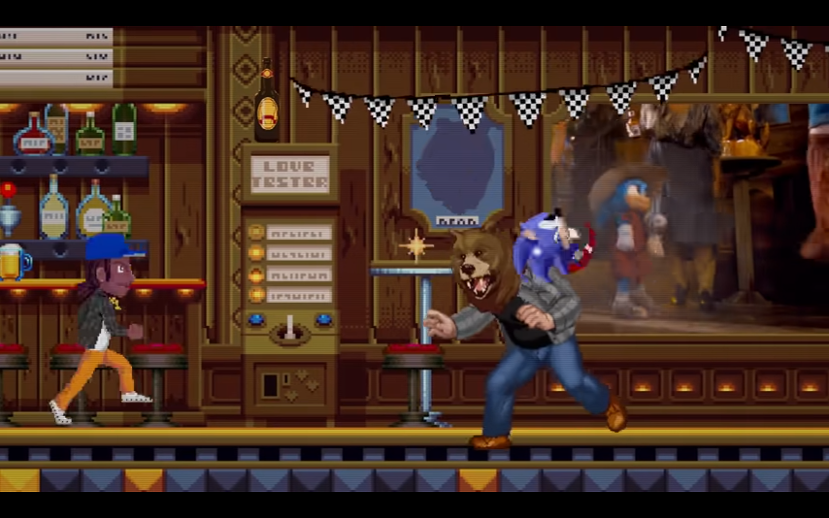 이러한 작위적인 전개가 가장 극대화되고 있는 부분이 술집 난투씬이었는데 힙스터 문화를 즐기고 있는 사람들이 시비를 걸자 톰은 원만하게 해결하고 자리를 뜨려했지만 소닉은 이를 더욱 악화시켰으며 본격적인 싸움이 벌어져서 톰이 한 대 맞은 후에야 자신의 스피드 능력으로 주변을 농락하고 도망친다. 이 장면에서 초고속 카메라로 찍은 것처럼 소닉의 압도적인 스피드를 강조하는 연출이 처음 나타나는데 문제는 이 연출이 에그맨과의 교전에서도 다시 한 번 나타난다는 점이다.