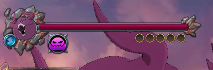 처음에는 하단 이미지의 중간에 위치한 기본상태에서 시작한다. 이후 3턴 간 누적된 대미지가 30만 이상(익스트림 난도 기준)이면 좌측 (지쳐 보이는 붉은색), 30만 이하이면 우측(화 난 것으로 보이는 보라색) 상태로 변화된다. 이후 2~3턴이 지나면 다시 기본 상태로 돌아오며 3턴 전투 후 대미지에 따라 다시 변화되는 것이 반복된다.