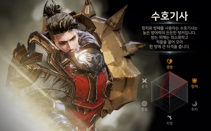 전장에서 오랫동안 생존하며 안정적인 전투를 펼치기를 원한다면 수호기사가 적합한 클래스다. 또, 방어력이 높은 만큼 최전선에서 버티면서 아군의 든든한 방패막이 되어줄 수도 있다.