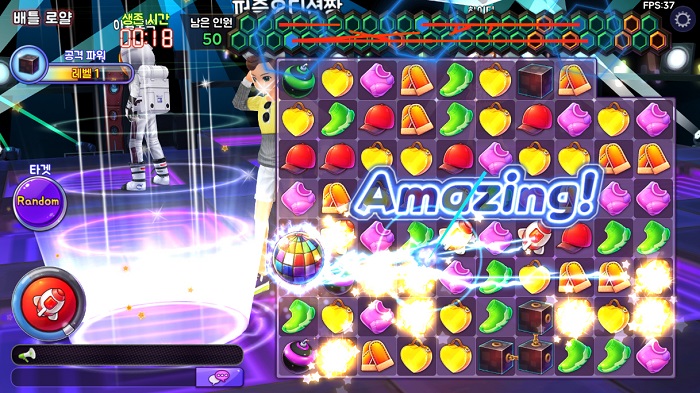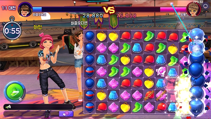 '퍼즐오디션'은 3매치 장르(같은 종류 블록 3개를 연결하는 퍼즐게임류)에 오디션 특유의 음악과 댄스, 그리고 소셜 기능을 결합했다.