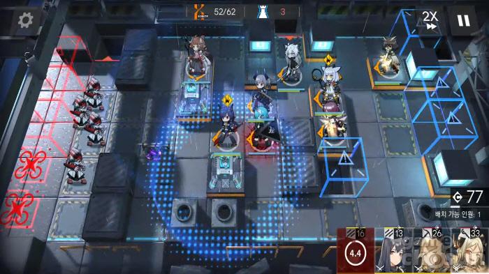 이후 아군 베이스를 지킬 디펜더와 힐러 둘을 매치하고 캐스터나 스나이퍼를 좌측을 보도록 배치하면 끝. 우측에서 공격하는 딜러는 마지막에 등장하는 방어력 높은 적을 상대하기 위해 아츠 공격이 가능한 캐스터나 높은 공격력을 가진 단일 스나이퍼 배치를 추천한다.