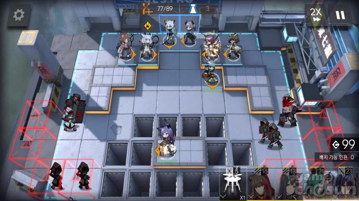우측 하단으로 오는 적은 쇼 하나로 모두 막을 수 있다. 다만, 캐스터처럼 원거리 공격 유닛도 출현하기 때문에 적어도 1정예까지는 올려주도록 하자.