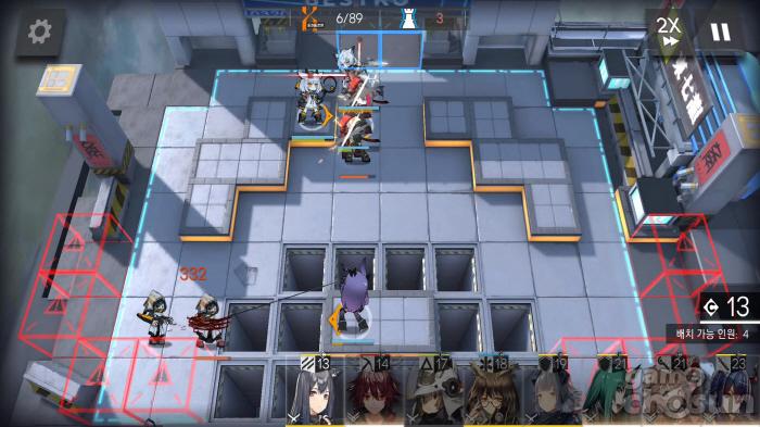시작 후 등장하는 12명의 적은 크게 위협적이지 않은 근거리 전투원이기 때문에 가드나 뱅가드를 두세 명 배치해 막아준다. 이후 우상단에 있는 프로스트를 처치하기 위해 1시 언덕 지역에 단일 캐스터를 배치하자. 또한 12시 적 베이스에서는 적 캐스터 유닛이 지속적으로 등장하기 때문에 가드를 배치해 처리한다.