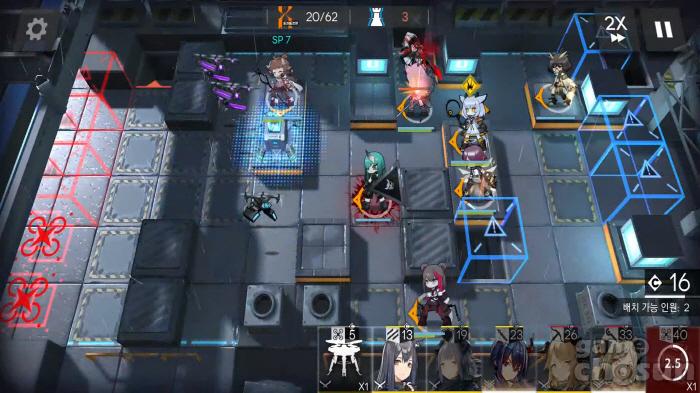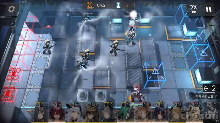 뱅가드와 가드가 튼튼하다면 두 명, 등급이 낮다면 중앙 지역에 세 명을 배치 = 게임조선 촬영