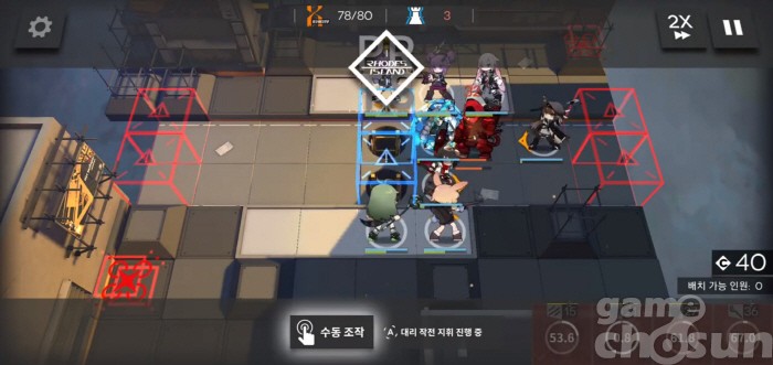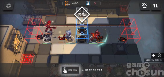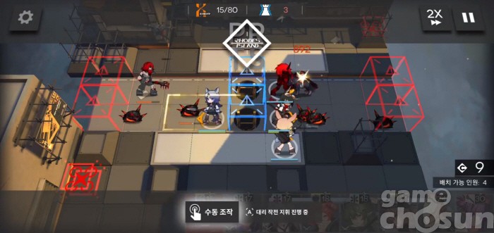 만약 우측 상단에 느와르 코르네를 배치했다면 높은 방어력을 가진 디펜더로 교체 후 메딕과 광역 캐스터, 공격형 뱅가드를 함께 배치해 무장병력을 처리하면 된다.