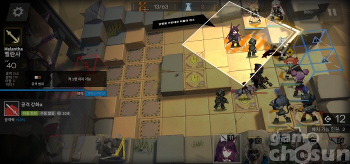 멜란사를 방공룬에 배치하고 안셀의 스킬을 사용하면 쉽게 버틸 수 있다 = 게임조선 촬영